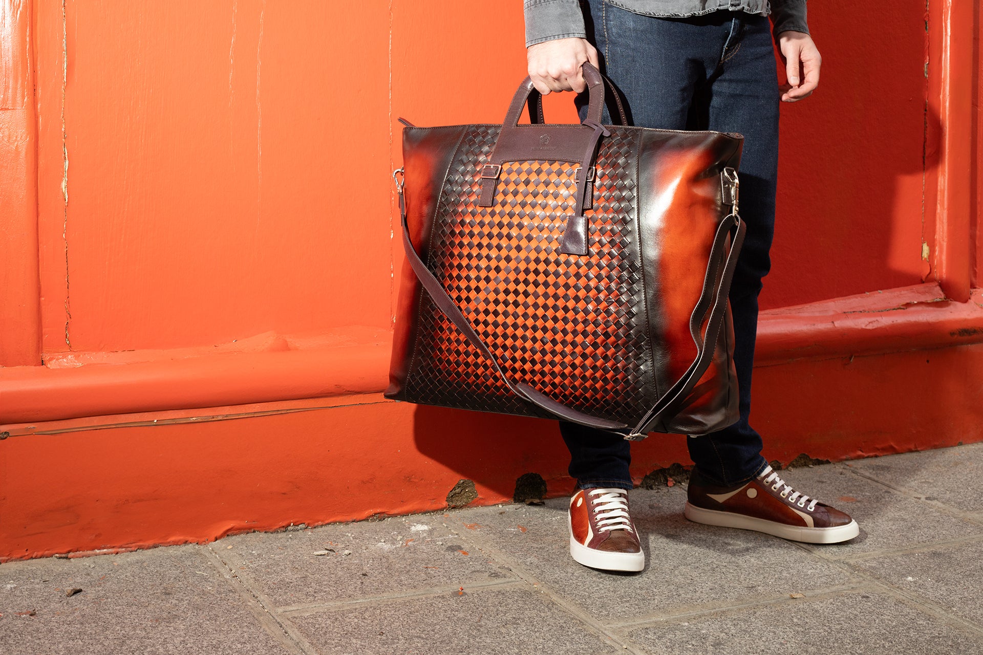 - Material: Cow leather,Woven calf leather
