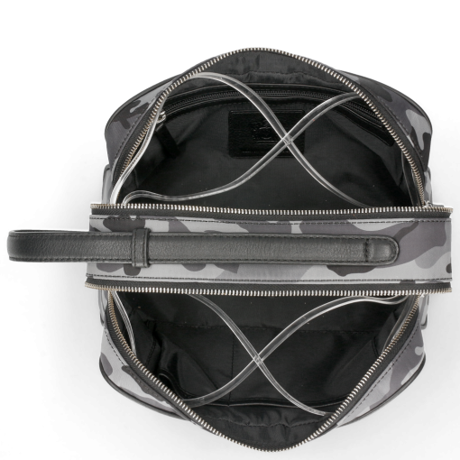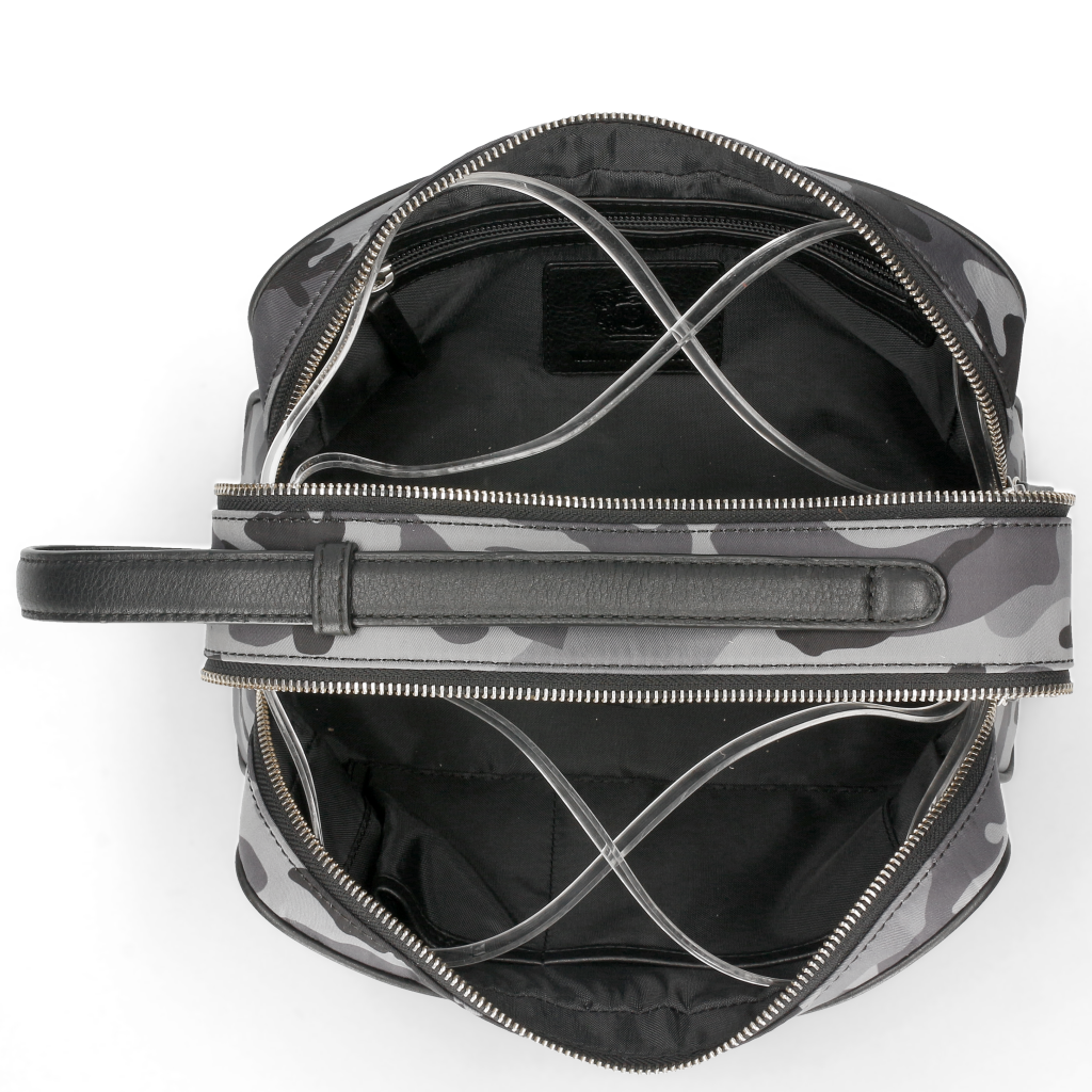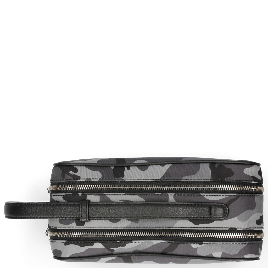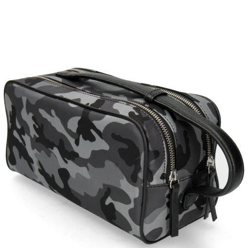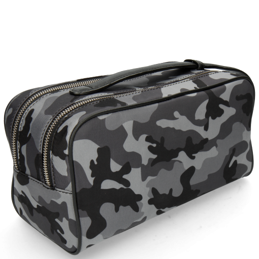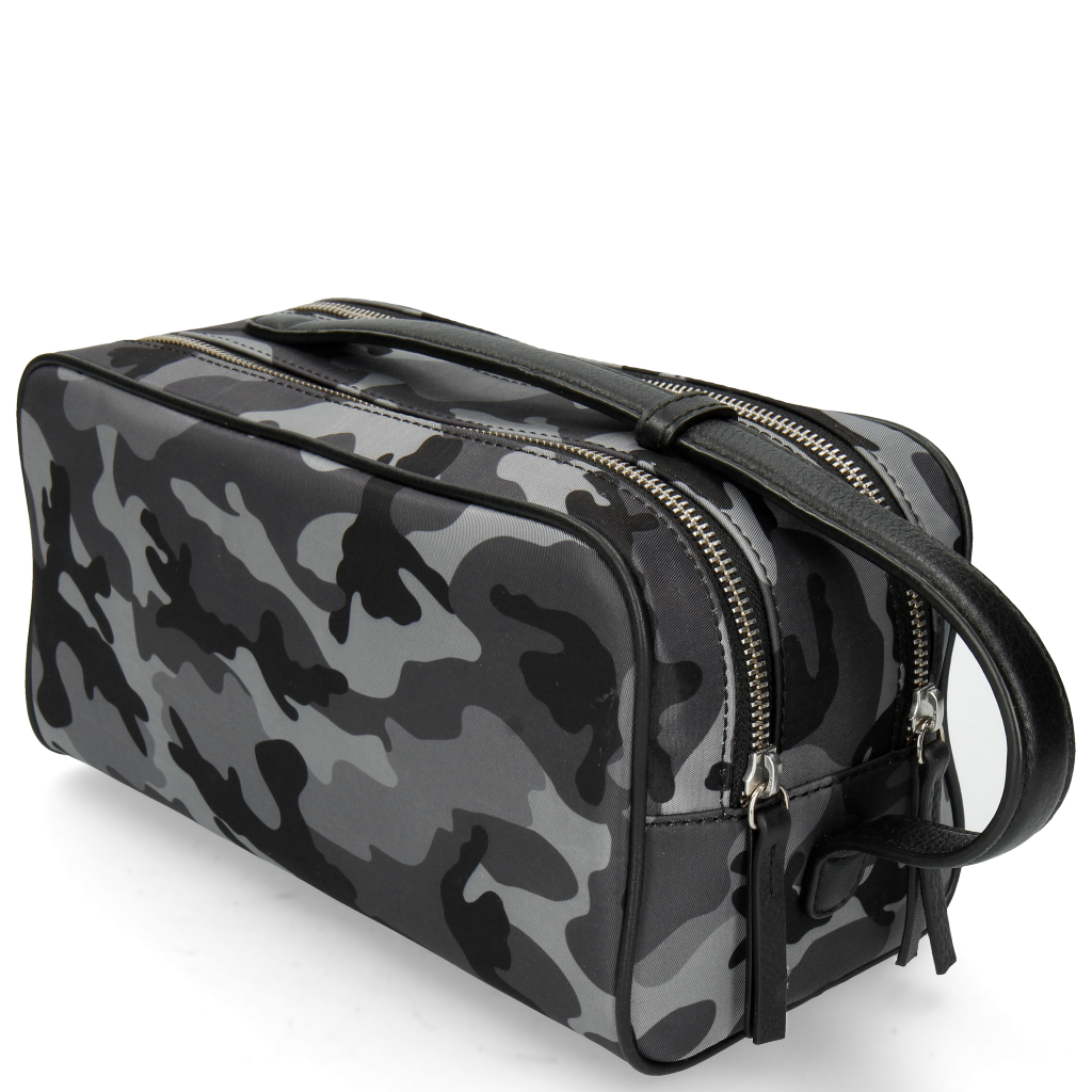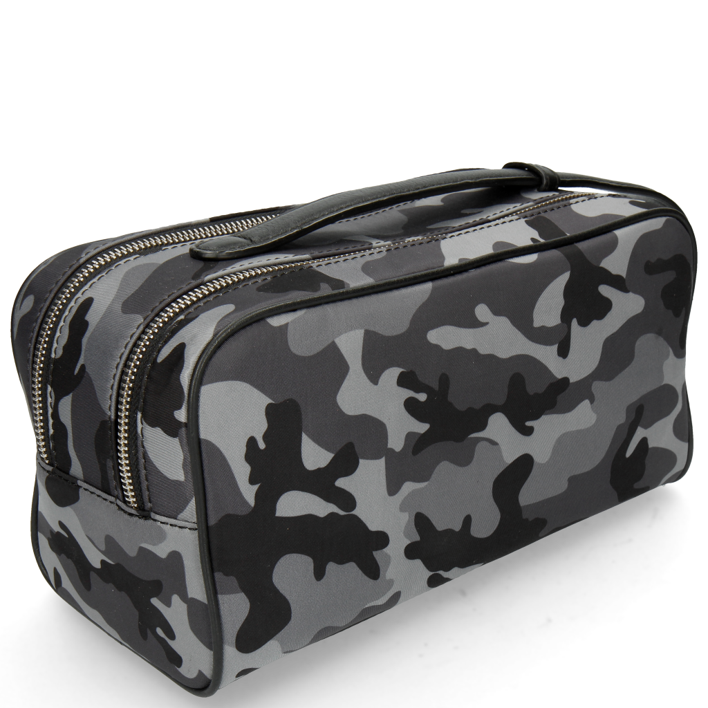 The brand new Melvin& Hamilton Palermo toiletry bag is the perfect companion for all trips! With 2 zipped compartments, one with a zipped pocket and the other with 2 open pockets, there’s enough space for everything you need and the leather handle will make is easy to take it anywhere! The grey leather combined with the camouflage pattern makes it a nice casual chic part of your travel bags.