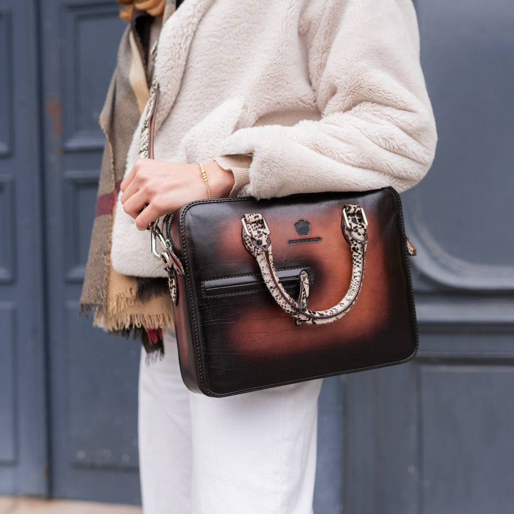 Looking for a new fashion handbag? Melvin& Hamilton’s Vancouver handbag will be the perfect choice! With generous dimensions to store a small notebook and personal effects, this light brown leather bag with animal prints hairon handles is the perfect bag to keep all your documents safe while been a real fashionista in the street. It’s a perfect classy, stylefull and professional bag. It can be carried as a cross body bag as well as a handbag.