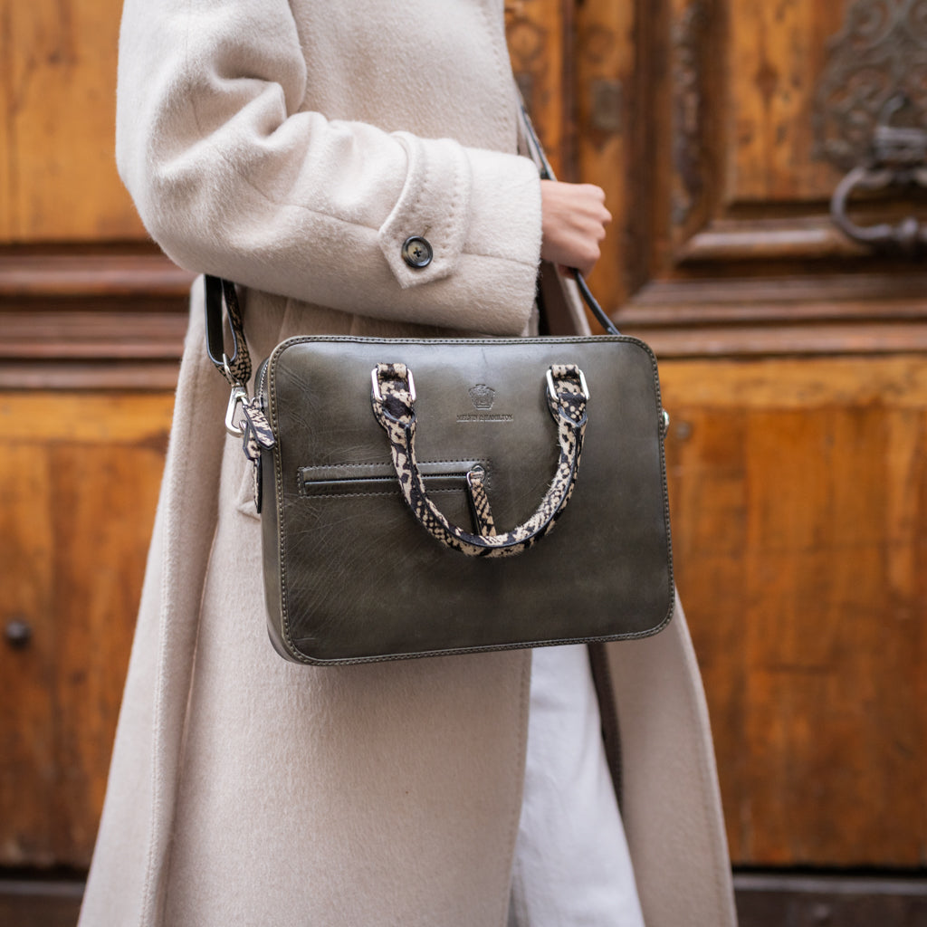 Be the first to review “Melvin & Hamilton Women’s Bags Vancouver Vegas Seaweed Hairon Snake | Khaki” Cancel reply