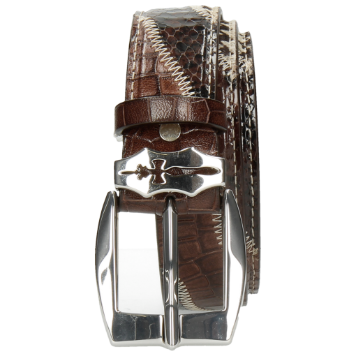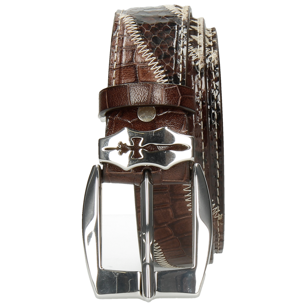 Melvin & Hamilton Women’s Larry 2 Python Brown Hairon Black White Crock Mogano Sword Buckle | Brown