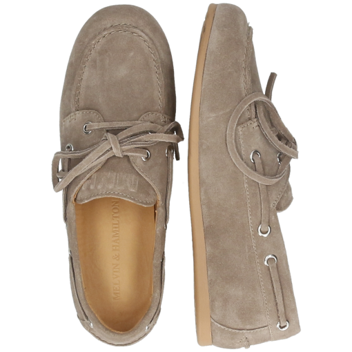 Melvin& Hamilton presents its spring/summer collection of women’s boat shoes. The comfort of boat shoes sails you to relax all summer long. Here are the features of our Olga 1 leather model. Enjoy a pair of comfortable, supple shoes that takes you through the day! Whether you’re strolling by the seaside or in town, our women’s boat shoes in grey cow leather, suede leather are just what you need! A summer trend, they’re easy to slip on and let your feet breathe. And thanks to their ultra-light brown rubber sole, wearing them will be a real pleasure! Discover Melvin& Hamilton’s unique craftsmanship in this round toe model.