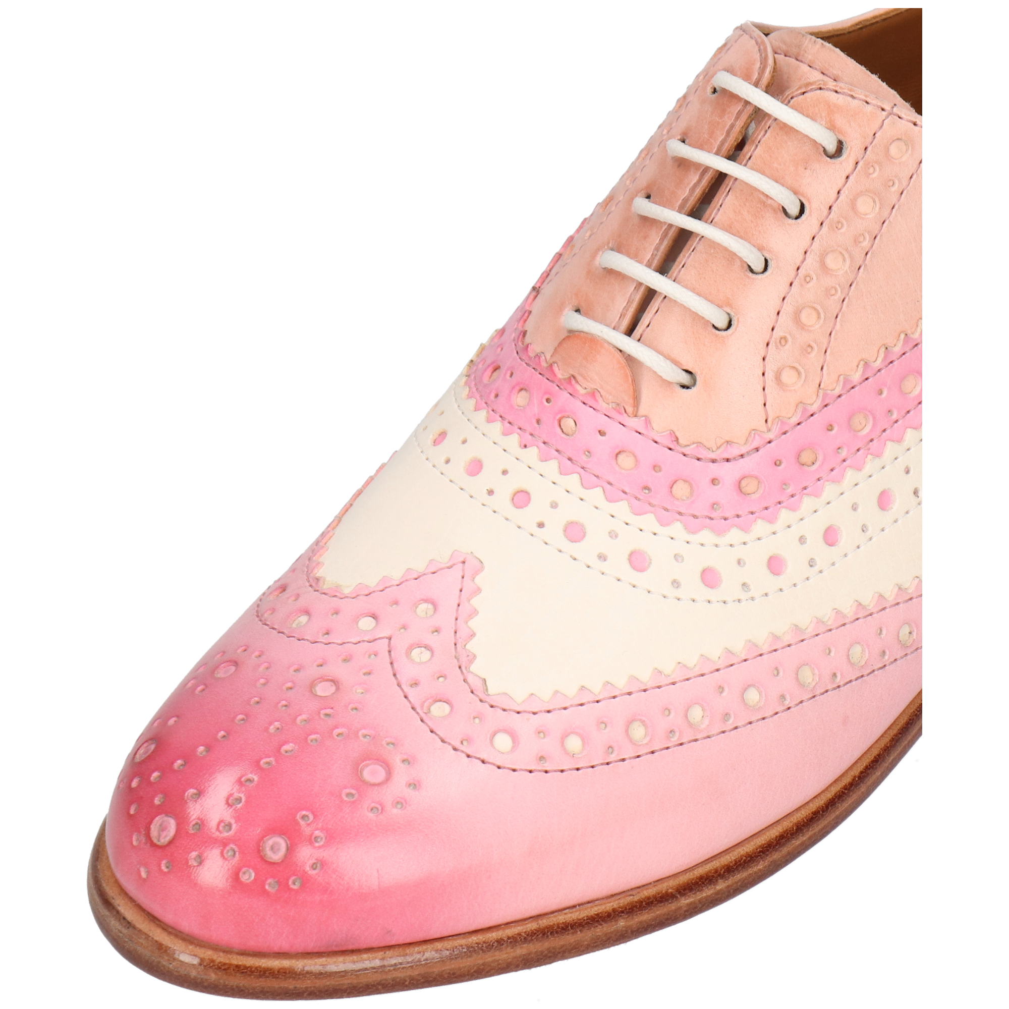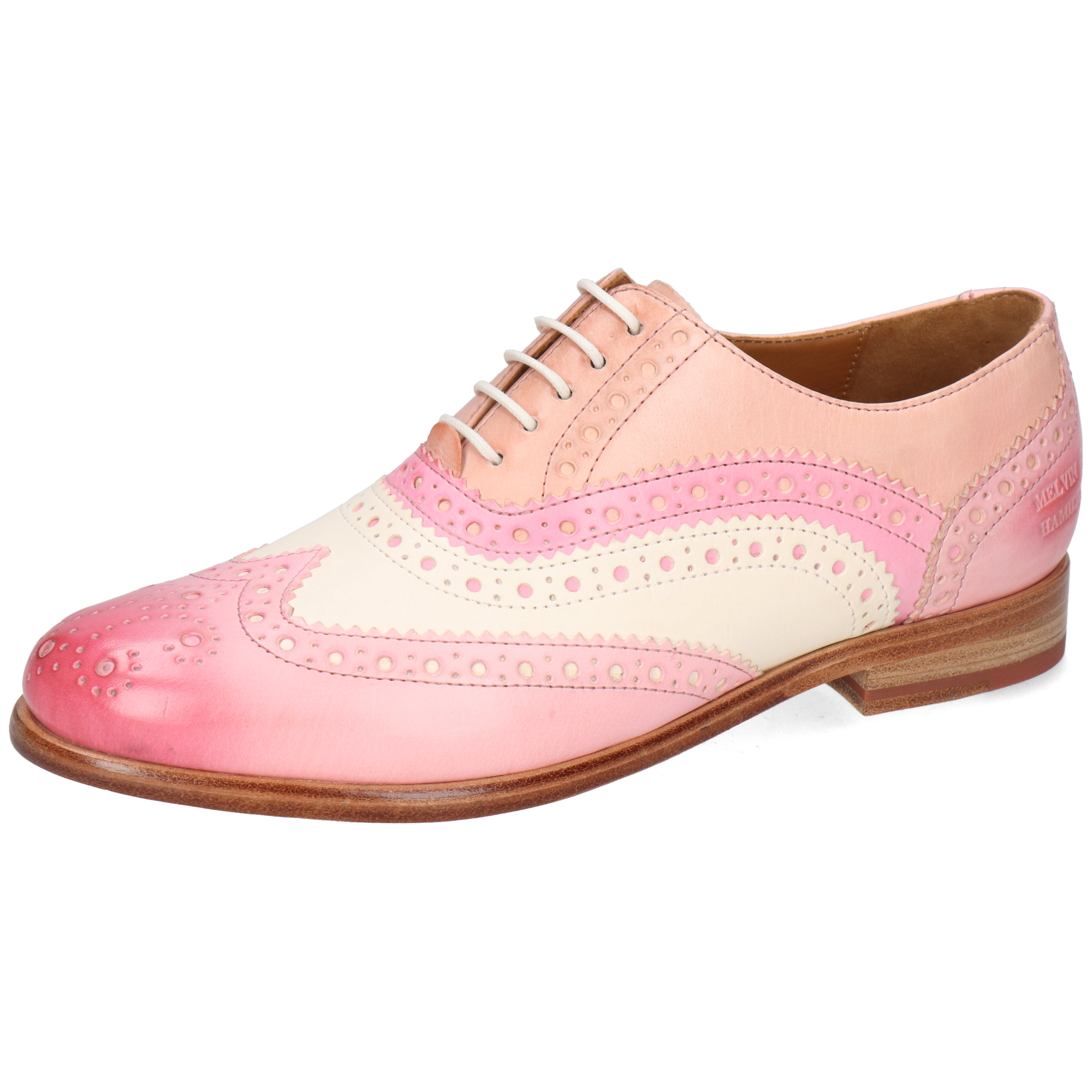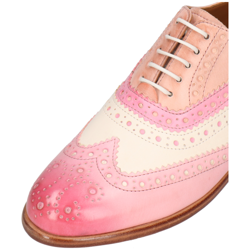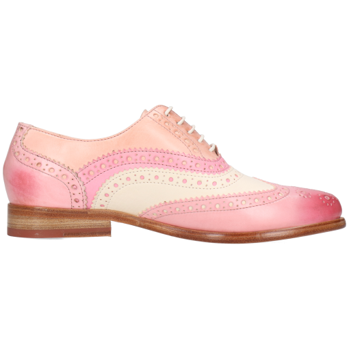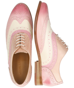 Melvin& Hamilton presents its spring/summer collection of women’s Oxford shoes. This type of shoe is characterised by its closed lacing system, which gives it such a fine, refined look. Discover the features of our Selina 90 leather oxfords. The Oxford shoe has a very classic shape. But if you want to brighten up your business look or dressy outfit, this model in pink cow leather with a block heels is perfect for you! This model with a round toe and abeige leather sole, is sure to catch everyone’s eye. Opt for original colours or patterns, which are very popular during the summer months.